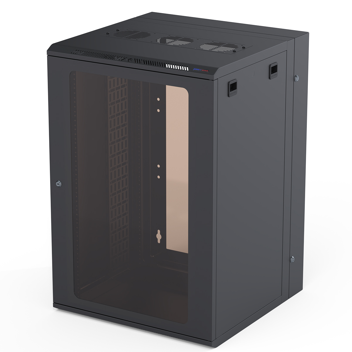 - 18U High-End Black Wall Mount Rack Cabinet with M6 Threaded Rails