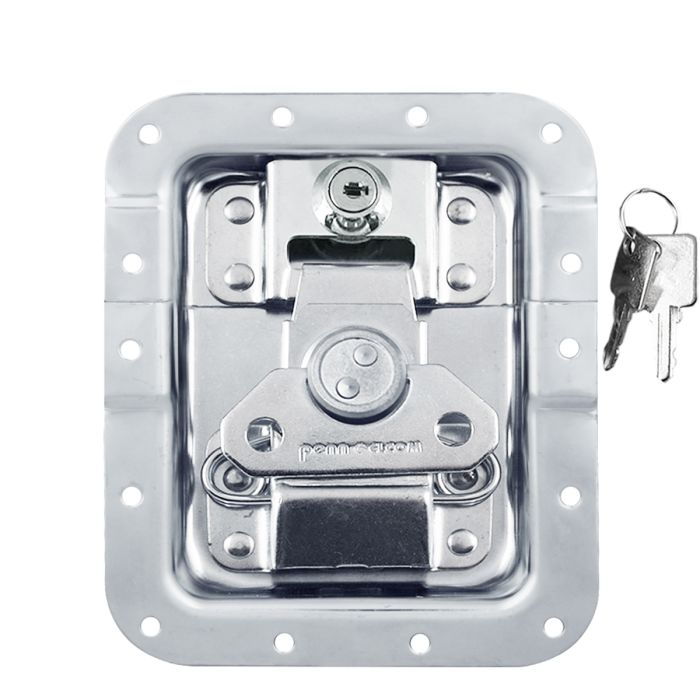 Large PennBrite Zinc Recessed MOL® Butterfly Latch with Key Lock in 16mm Deep Short Dish (158mm) with 27mm Offset.