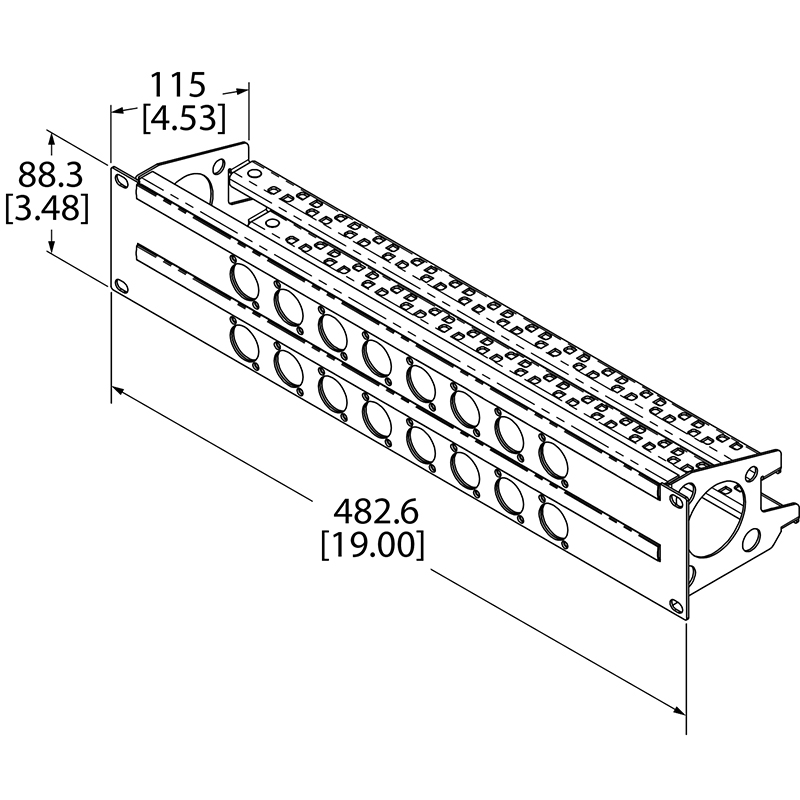 2U Rack Panels for 24 x Neutrik D-Series Connectors with Cable Support Bar