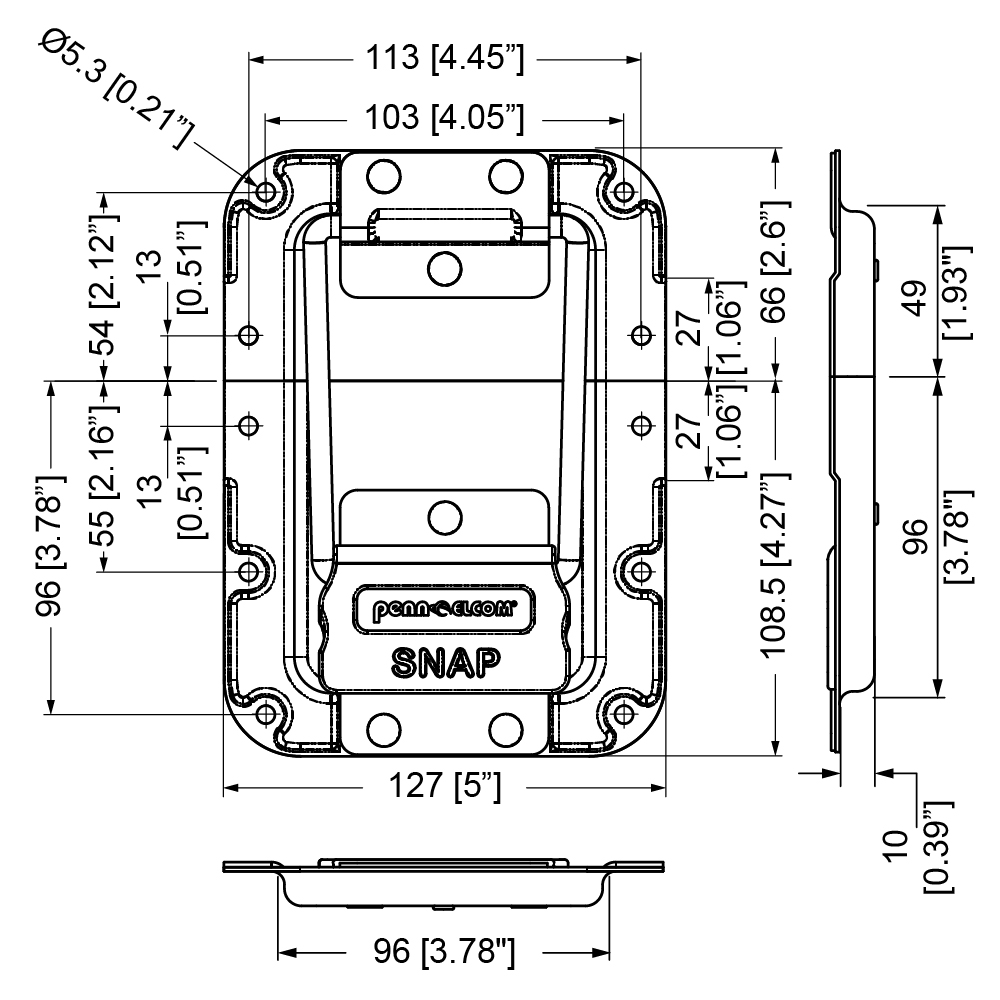 Large Black Lid Stay with PENN SNAP Locking Technology in 10mm Deep Dish with 27mm Offset