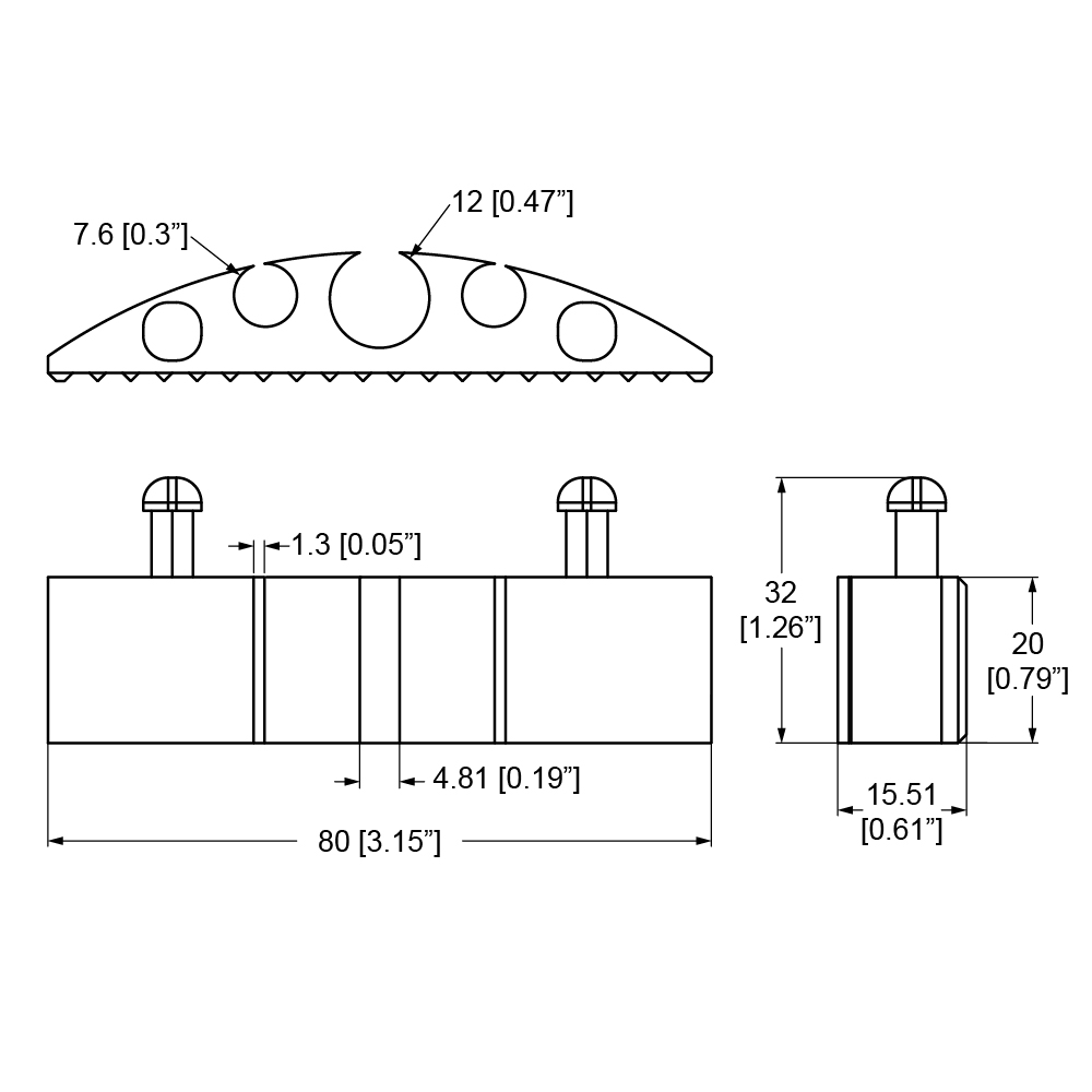 - 3 x channels for cables – 2 x Ø7.6mm, 1 x Ø12mm