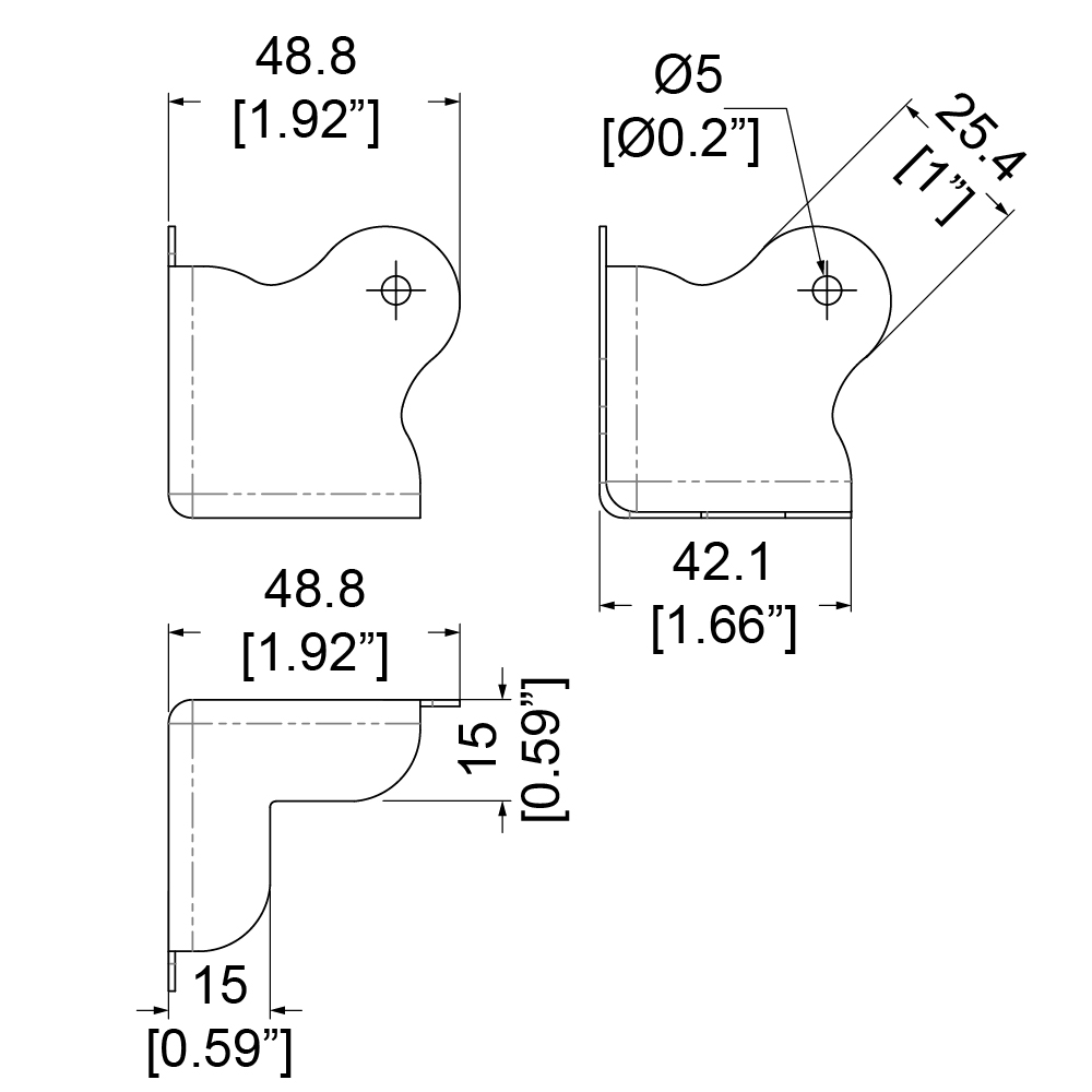 Medium Black 2 Leg Flat Corner with 2.5mm Radius