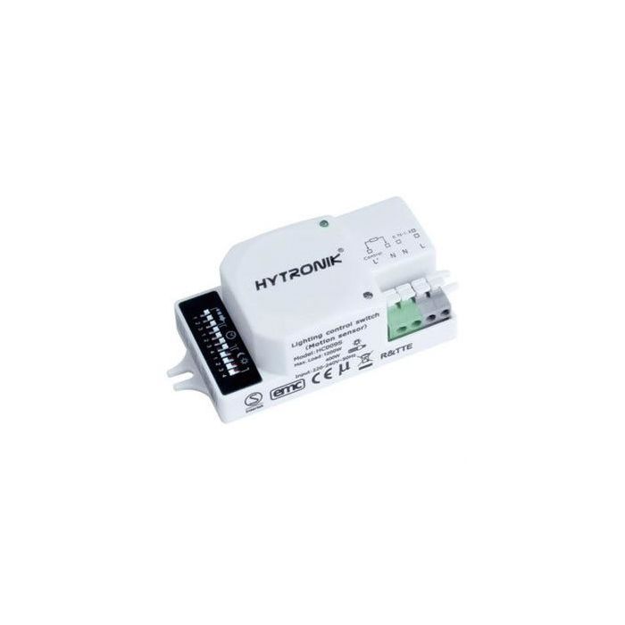 This Motion Sensor is a motion switch that turns on the light on detection of moving objects and turns it off after a pre-selected hold-time period if motion was not detected. The product also includes a built-in daylight sensor for switching off light sources when sufficient natural light is detected.