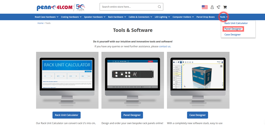 1 - Access Panel Designer on the Penn Elcom Tools & Software page, or by clicking Panel Designer under the Tools in the website navigation bar.